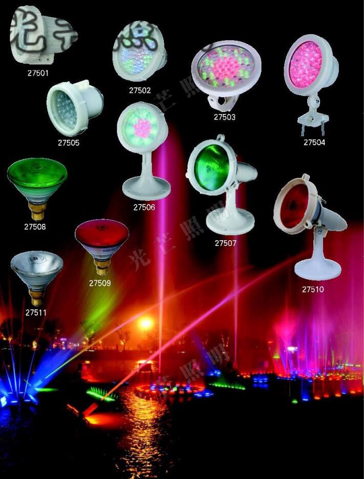 安裝方式:明裝(支架式LED水底燈)、暗裝(地埋式LED水底燈)、中孔水景燈(噴泉燈)等